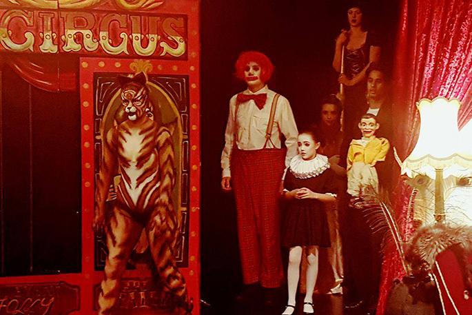 My own family's ventriloquist doll, Charlie Brown, who we've often talked about as 'our little brother” ended up with his own cameo role, as the film created characters based around a circus type theme with a snake charmer, bearded lady, stilt walker, Charlie Chaplin, strong man and others. That moment when a family member makes it to the big screen is certainly an exciting one, even if he is a puppet!