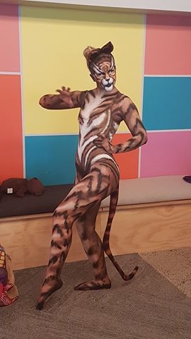 We started the day at 6am, with Sandi Cutts turning Zoe Kirtley into a tiger woman in time for filming at 11am. I was impressed with how the group of actors, aged 5–19, knew there would be a great deal of waiting time during the day before their scenes were called. Costuming, makeup, waiting for those few moments to act, and then not knowing if it would be ‘left on the cutting room floor'.