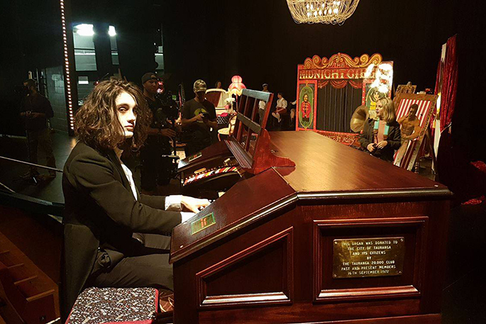 The International Youth Silent Film Festival NZ finals were held on Sunday night with the ten finalist films screened with live accompaniment by organist Nathan Avakian, the film composer, on the Mighty Wurlitzer. The ‘one shot wonder” promo made by the Bay of Plenty Film community was screened and is now viewable on Vimeo at: vimeo.com/188909923