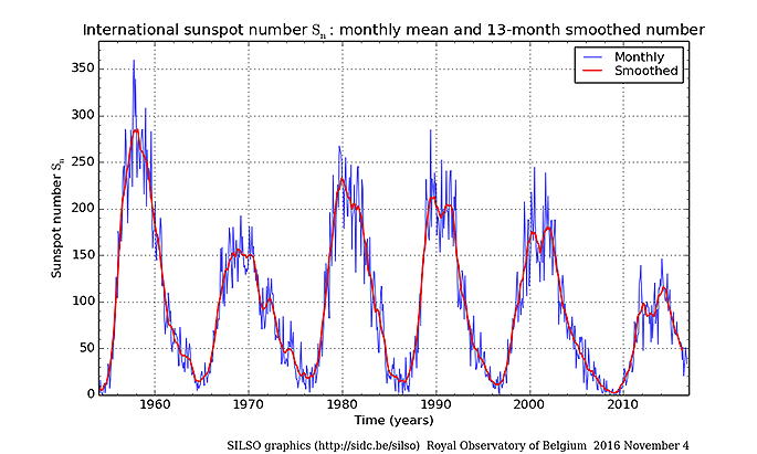 The NASA Solar Physics website (and other web sites such as the Royal Observatory of Belgium) includes information on sunspot numbers, the ‘Maunder Minimum', and sunspot cycle predictions.