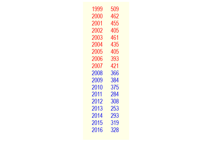 Spot the trend: the annual road death rate in the red years, when Clark was in power, compared to the Key/English years in blue. Notably, the road toll was at its highest when the Greens were supporting the Labour Government on confidence and supply, in return for input into budget and legislation.