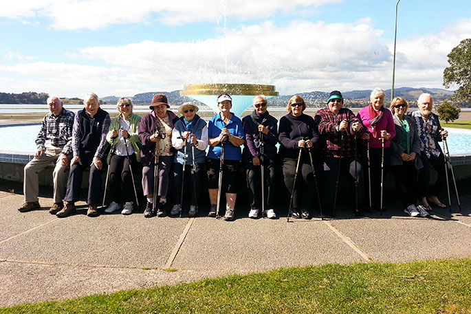The Tauranga Green Prescription Nordic Walking Group meet every week at Memorial Park. It has become a highlight of the week for most walkers.