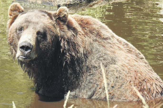 The Canadian version is often called a Grizzly. The one we stumbled across was rolling in a small lake for relief from the scorching northern hemisphere summer heatwave, that had not helped their mood.
