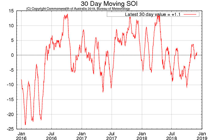The graph below ( from the Australian Bureau of Meteorology, BOM) shows monthly values of the SOI from 1880 to November 2018.