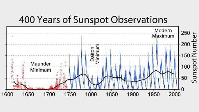 The ‘Maunder Minimum' is the name given to the period from 1645 to 1715 when the number of sunspots – ‘storms' on the sun – became almost zero.