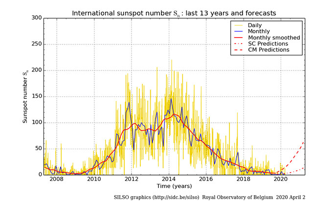 The NASA solar physics website, and other websites such as the Royal Observatory of Belgium, include information on sunspot numbers, the ‘Maunder Minimum' and sunspot cycle predictions.