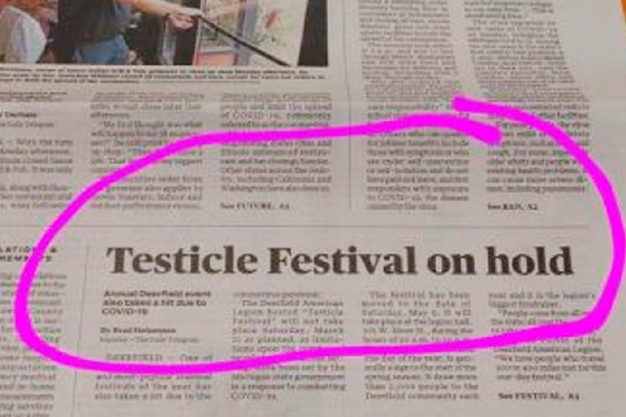 ‘Testicle Festival on hold' screams the headline in Lenawee County's local newspaper, the Daily Post.