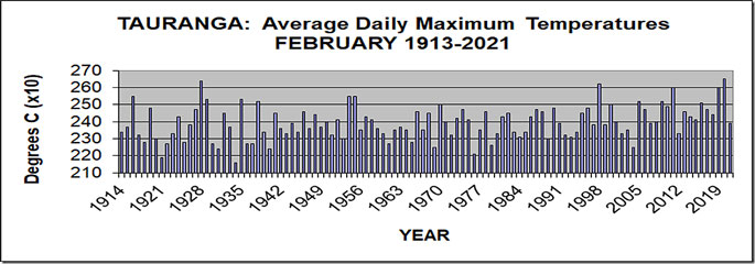 This analysis of February temperatures for Tauranga is for the average daily maximum temperatures.