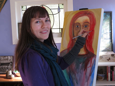 In the photo we see Tamara painting a portrait of the American poet Emily Dickinson.
