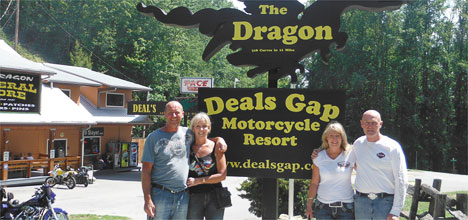 The next day after riding through the quaint town of Gantlinburg and over the Smokey Mountains we meet Keith and Deb at the beginning of the Tail of the Dragon - a scenic ride through the mountains with 318 bends in 11 miles.