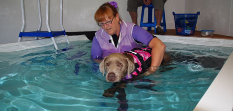 Senior and arthritic dogs enjoy the warmth on sore joints. They can exercise with their body weight supported, to avoid over-stressing arthritic joints. The warmth encourages greater range and freedom of movement. Jane says the therapy is good for dogs of all sizes, ages, including puppies and the privacy is good for dogs that are socially challenged.