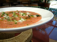 Drain off the bread and place in food processor with almost all of the remaining ingredients. Reserve some for garnishing finished soup.