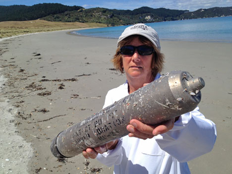 In the latest episode, this week, Claire Rogers and Labrador Flo were swimming in the pristine, blue waters of an isolated Coromandel beach, with nothing more taxing on their minds than contemplating tuna and kingfish sashimi with home-made pickled ginger. Until they discovered this potentially lethal contraption awash near the high tide mark.