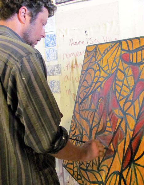 Kristian at work preparing for his exhibition.