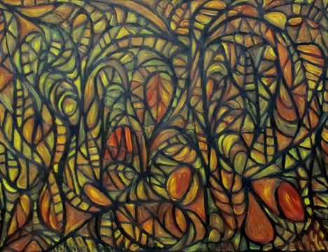 Kristian's abstracts are richly layered in oils, and worked in a multiplicity of shades, hues, and sizes.