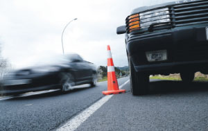 Driving to work this week we spotted a vehicle off the side of the road, apparently broken down. It had three road cones around it.