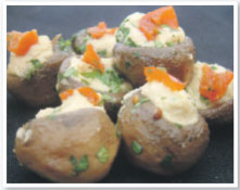 Some readymade hummus have a lot of added liquid, so add in the cream cheese to thicken the hummus, then pipe into the mushroom cups and sprinkle with parsley.