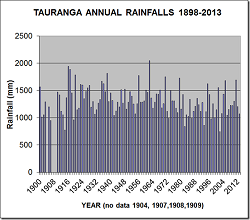Monthly rainfalls for Tauranga have been recorded at several recording sites during the last 114 years.