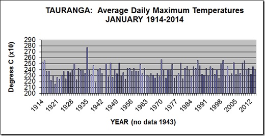Heading: Tauranga's January average daily temperatures 1914-2014