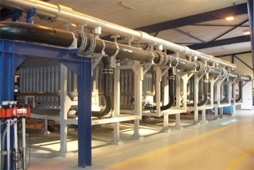 Microfiltration allows harmful organisms, such as giardia and cryptosporidium to be removed from the water supply. The process uses millions of tiny straws, less than 1mm in width. The raw water enters the tubes and passes from the outside to the inside of the straws through tiny holes. These holes are so small, about 0.2 micron in size, which prevents the harmful organisms getting through. The clean water passes out through the core of the straws.