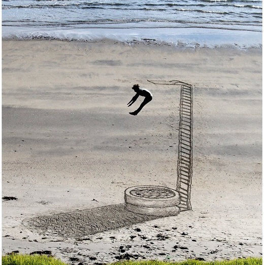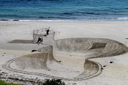 Crevices, staircases into the ground, skateparks, and whimsical drawings – their imagination is transforming a sandy cove into stunning works of art. Known as 3DSD (3D Sand drawings), they pair say their goal is to have fun, to entertain people and to captivate their attention by playing with optical illusion to create three dimensional drawings.