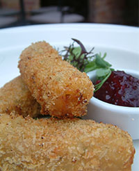 Once set, shallow or deep fry until golden brown, and serve with cranberry or plum dipping sauce.
