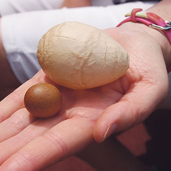 Alison Verran has learnt that hen's eggs can come in all shapes and sizes. She brought in a couple of weird ones to the Sun office this week. One of her 12 chooks at Bethlehem regularly lays a wrinkly shelled egg.