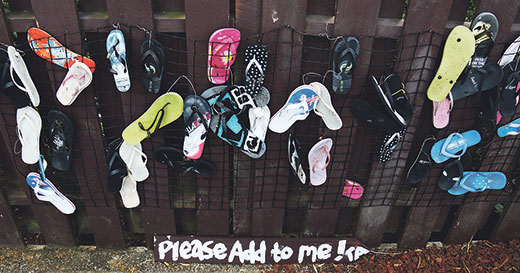 There are currently 72 jandals on the fence at 117 Oceanview Rd at the Mount.