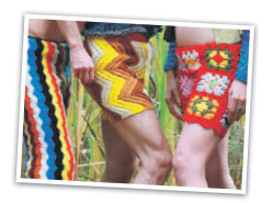Maybe your crocheted shorts will end up hanging on a fence somewhere, once you sober up or realise just how ridiculous you look with a tea-cosy on your backside.