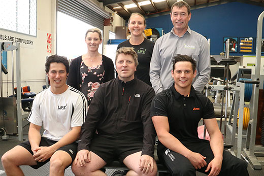 The LIFE team of Renee Deville, Dawn Kiddie, Mike Williams, Allister Field and Liam Knight will guide Dan Sheridan (front, centre) through a 10-week fitness camp.
