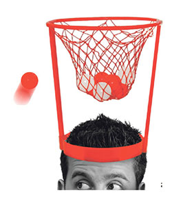 This Headband Hoop Game consists of a red ‘one-size fits all' headband hoop which has Velcro fastening and comes complete with 20 small plastic balls, 10 red and 10 white. Simply attach the Hoop Game to your head and then shoot away!