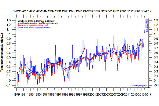 The graph is updated to February 2016. GISS is a laboratory of the Earth-Sun Exploration Division of NASA's Goddard Space Flight Center and a unit of the Columbia University Earth Institute.