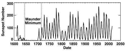The 'Maunder Minimum” period is named after the solar astronomer Edward Walter Maunder (1851-1928), who while working at The Royal Observatory at Greenwich discovered the dearth of sunspots during the 1650-1700 period.
