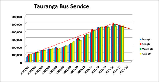 Up until the end of 2013, Tauranga's bus patronage was increasing strongly, but since then it has been going down. Why? I would say it is because councillors aren't taking enough interest to ensure the bus service is fit for purpose. I say this after reading all of the minutes of the Bay of Plenty Regional Council's Public Transport sub-committee.