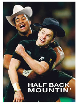 Anyway after getting tired of the nonsense, RR decided we should come up with the movie trailer, in preparation for a gay All Black ‘coming out.' If the whole team ‘played for the other team,' they'd henceforth be known not as the ABs, but as the GayBs.