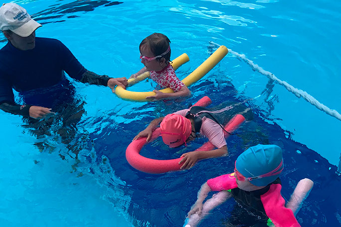 Within Tauranga Swim School there are classes for water safety to teach how to tread water, stay warm and what can be used to stay afloat.
