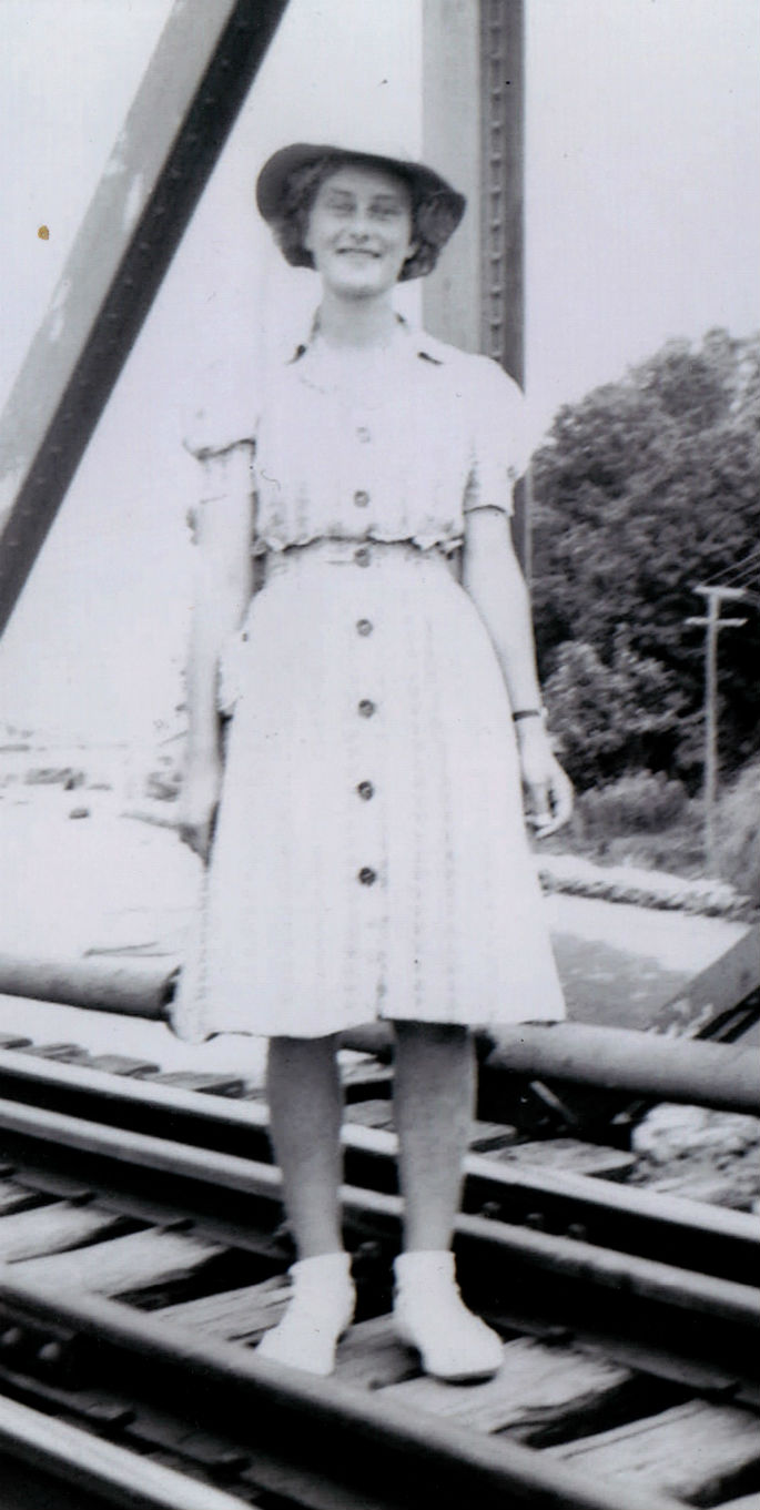 As a young working woman, a waitress at the New Moon Tearooms, she would cycle to the rail bridge and walk the bridge track – trains and all, in the dead of night, no lights and no pedestrian way. 'One day they were all anxious for me because a train had broken down on the bridge and I couldn't get past.”