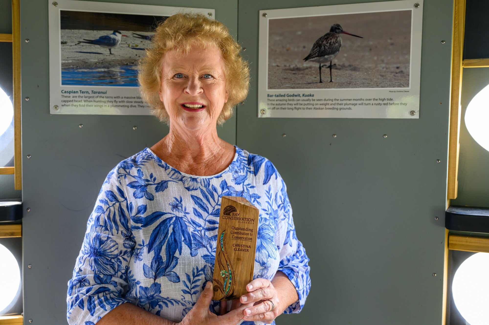 Ōmokoroa conservation advocate Christina Cleaver has been honoured with the Bay Conservation Alliance Trophy for outstanding contribution to conservation in the Bay of Plenty, recognising nearly a decade of tireless work protecting the region’s birdlife.