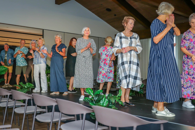 Twelve ladies and three gents from Pacific Lakes Retirement Village in Pāpāmoa perfected their walk, twirl and pose after 10 weeks of training.