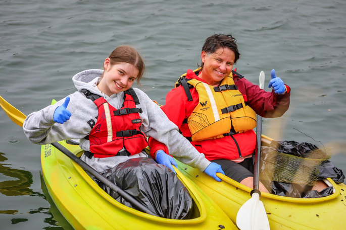 After a safety briefing by park staff, about 35 people jumped in kayaks to look for and collect rubbish from about 11am to 1pm.