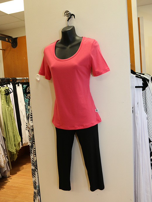 “The range is for women from all walks of life and we stock plenty of colours,” says Cathy. There are camis, short sleeve or sleeveless blouses and pants for casual wear and T-shirts, shorts and full and three-quarter leggings suitable for active wear.