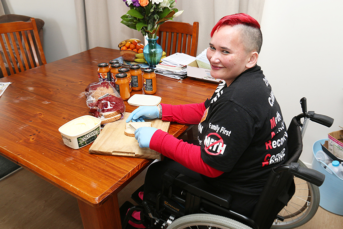 Now confined to a wheelchair, Teisha has help while Wiremu is at work.