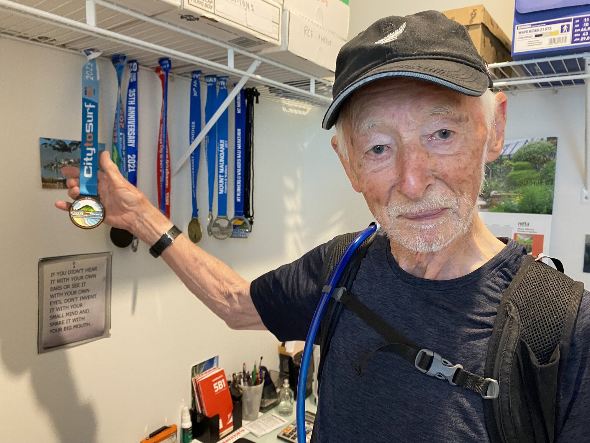 Tauranga nonagenarian Reg Denny isn’t slowing down. On Sunday, the 90-year-old will lace up his walking shoes and stride out in the annual City to Surf Half Marathon.